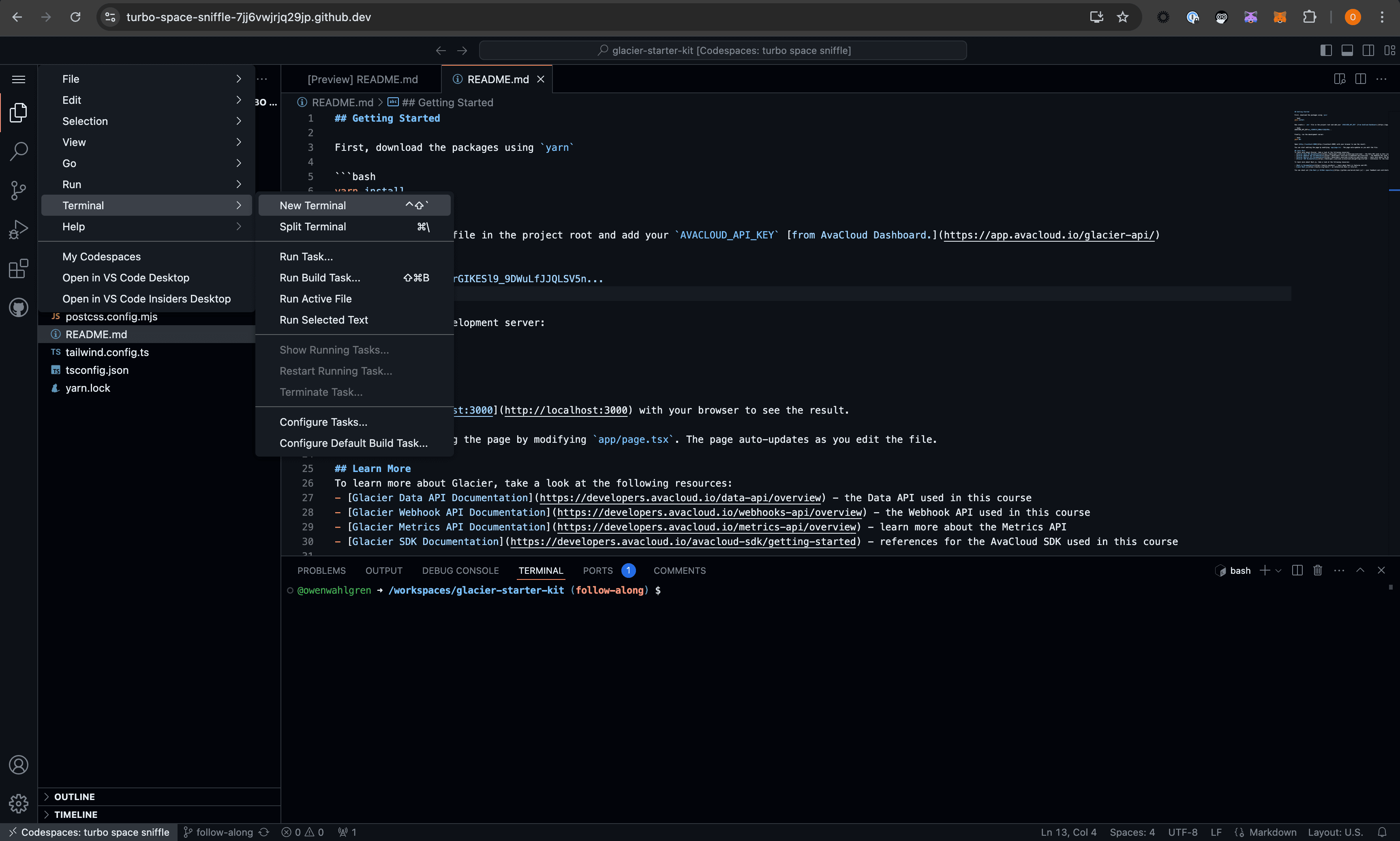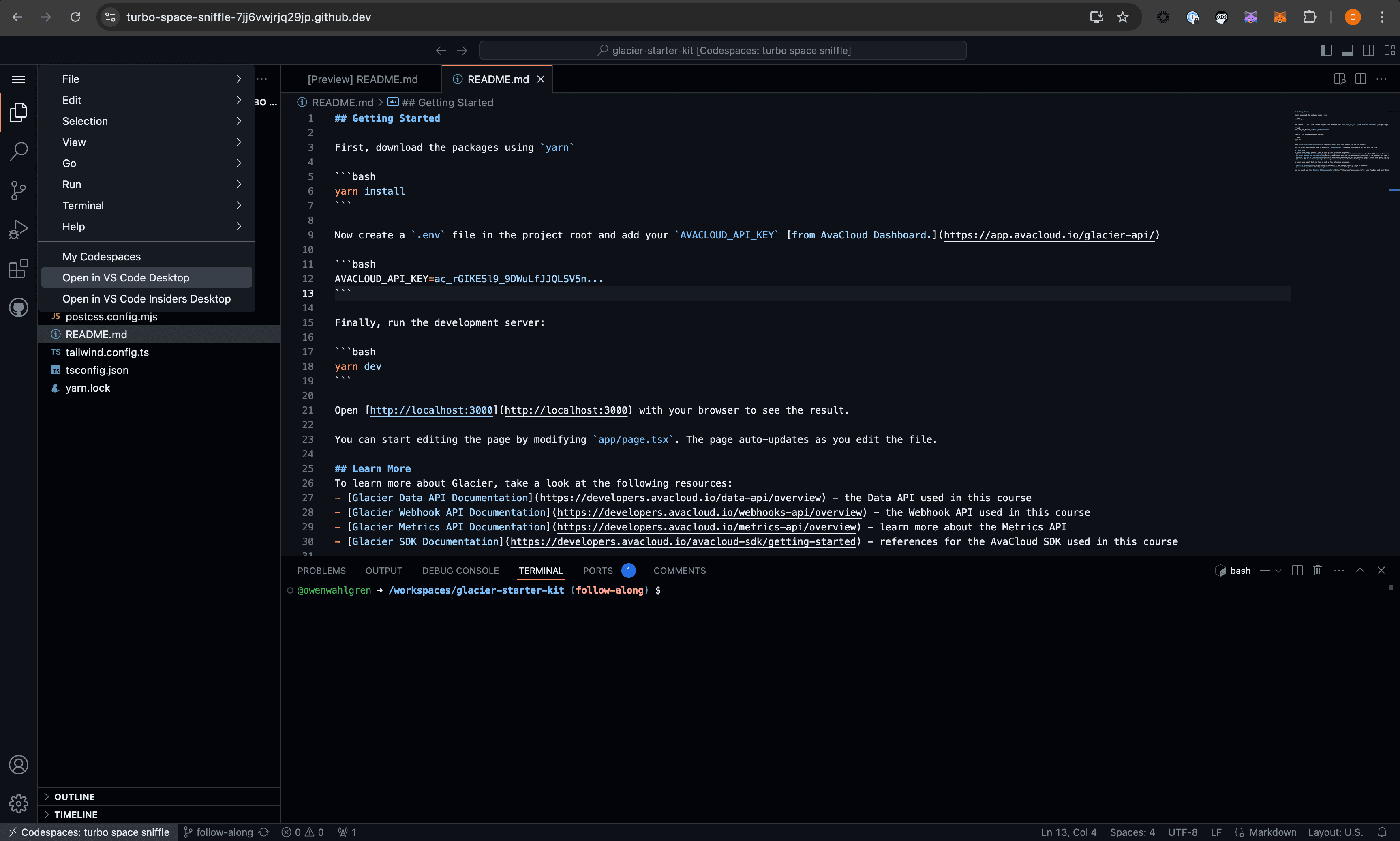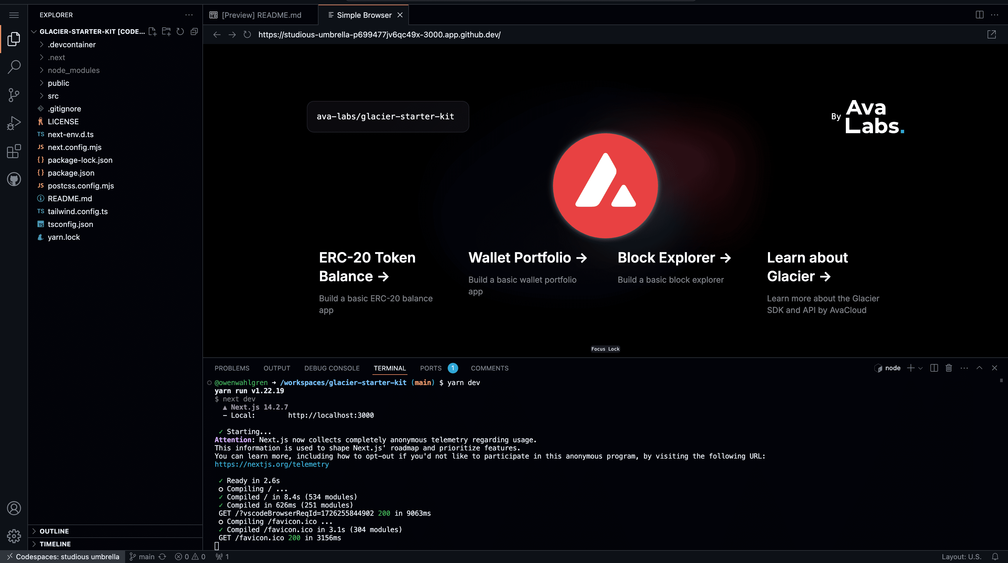 Set up the AvaCloudSDK Starter Kit in a GitHub Codespace