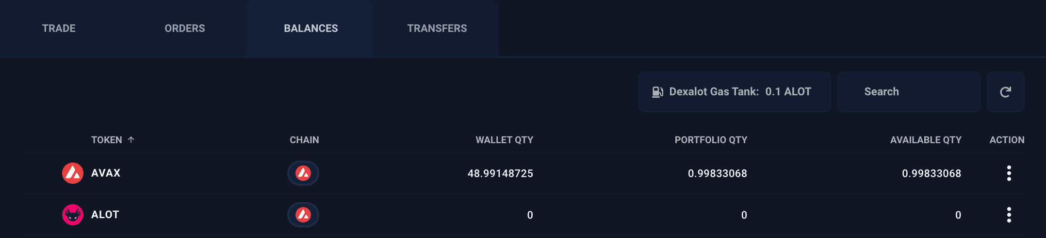 Head over to the Dexalot Testnet, connect your wallet (top right), and click on the Balances Tab in the Trade page. You will have to authenticate your wallet for the first time you interact with Dexalot.